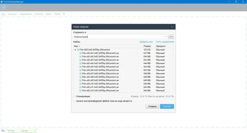 Free Download Manager — это бесплатная русская версия популярного менеджера загрузок, которая работает на различных операционных системах, включая Windows и macOS. Программа позволяет скачивать файлы с максимальной скоростью благодаря многопоточной технологии, а также восстанавливать прерванные загрузки и управлять приоритетами. Среди ключевых особенностей — поддержка расширений для браузеров, скачивание видео с YouTube и других потоковых платформ, а также интеграция с торрент-сетями. Возможность выбрать качество видео, скачать только аудио или субтитры делает FDM универсальным инструментом для мультимедийных загрузок. Также есть встроенные функции конвертации файлов и предпросмотра закачек.