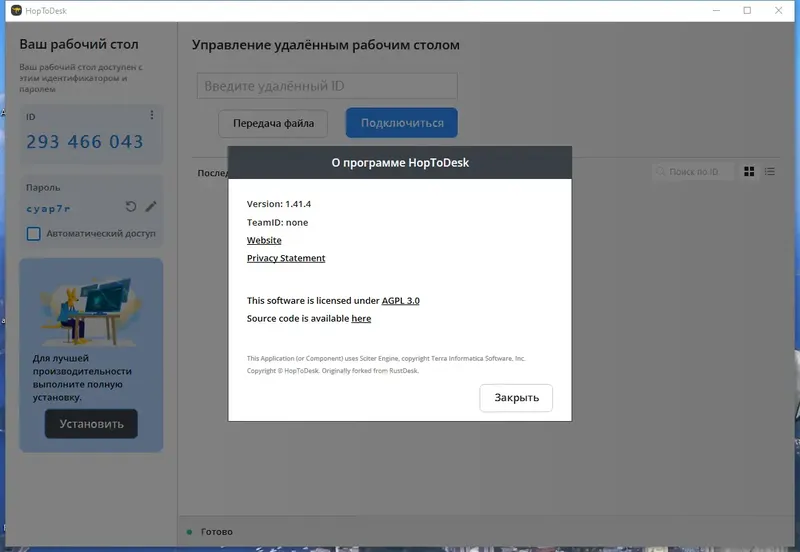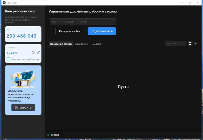 Для начала работы с HopToDesk необходимо скачать и установить программу на оба устройства, которые будут использоваться для удаленного доступа. После запуска программа автоматически создаст уникальный идентификатор или сгенерирует код, который нужно передать партнеру для подключения. В процессе соединения достаточно ввести полученный код или выбрать устройство из списка, чтобы установить удаленное соединение. В интерфейсе доступны функции обмена файлами, чата и записи экрана, что делает процесс максимально простым и удобным даже для начинающих пользователей.
