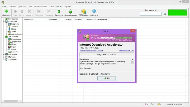 Internet Download Accelerator — это простой в использовании, но при этом очень эффективный менеджер загрузок, который помогает повысить производительность скачивания файлов. Он поддерживает работу с популярными протоколами HTTP и FTP, разбивая файлы на части для параллельной загрузки, что значительно сокращает время ожидания. Программа также позволяет восстанавливать загрузки после прерываний, отслеживать клики в браузерах и управлять скачиваниями по расписанию, что делает её универсальным решением для работы с файлами в интернете.
