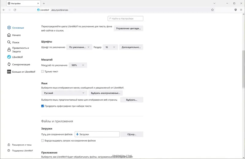 LibreWolf — это современный браузер, ориентированный на максимальную приватность и безопасность пользователей. Он основан на движке Firefox, но лишён встроенных служб телеметрии и рекламы, что делает его отличным выбором для тех, кто ценит конфиденциальность в интернете. Этот браузер идеально подходит для безопасного серфинга, работы с личными данными и использования в условиях повышенных требований к защите информации.