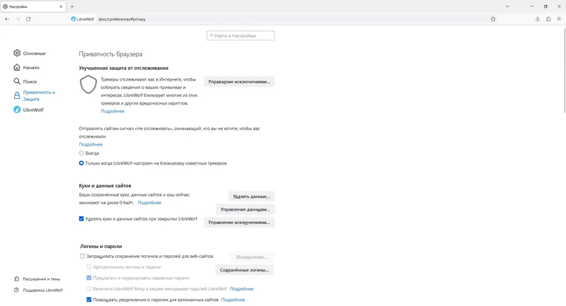 LibreWolf — это приватный и безопасный браузер, основанный на движке Firefox, который ориентирован на максимальную защиту данных пользователя. Он лишен встроенных служб телеметрии и рекламных функций, что делает его идеальным выбором для тех, кто ценит конфиденциальность и анонимность в интернете. Скачать этот браузер на русском языке можно для операционной системы Windows, получив надежное средство для безопасного серфинга без лишних отвлекающих элементов.