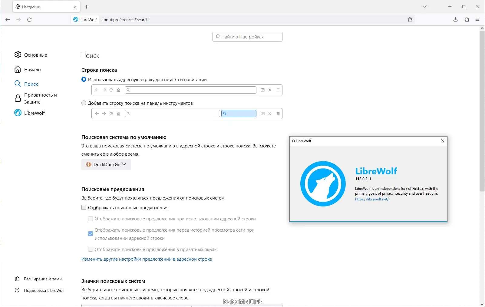 LibreWolf — это мощный и безопасный браузер, ориентированный на максимальную приватность пользователей. Он основан на движке Firefox, но лишён встроенных служб телеметрии и рекламы, что обеспечивает высокий уровень защиты данных. Этот браузер идеально подходит для тех, кто ценит конфиденциальность и хочет использовать интернет без лишних отслеживаний и сторонних сервисов.