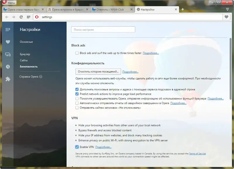 - Файлы cookie и история удаляются при закрытии браузера, что обеспечивает дополнительную приватность