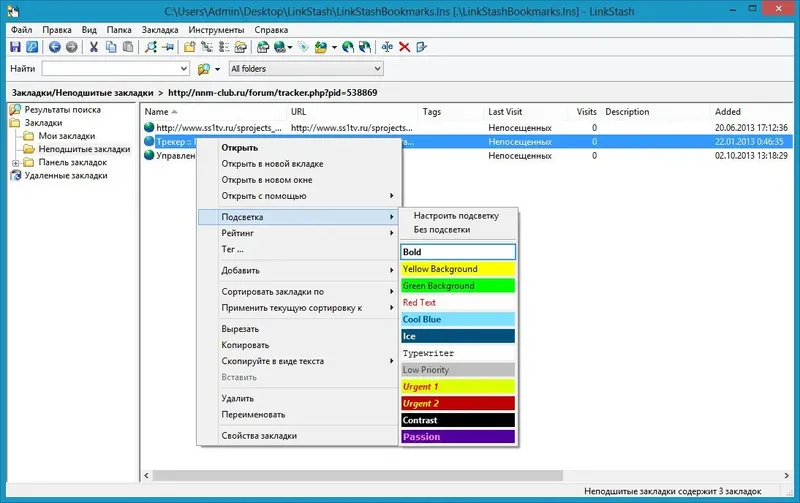 Для начала работы с программой необходимо установить и распаковать ее на компьютер. После запуска рекомендуется выполнить русификацию интерфейса, скопировав файл из папки Tabletka-Rus в папку с установленным приложением. В интерфейсе программы можно добавлять новые закладки, редактировать тэги, комментарии и устанавливать цветовые рейтинги для быстрого поиска. Для синхронизации с браузерами достаточно настроить соответствующие параметры, что позволяет автоматически обновлять и управлять закладками из разных источников. Встроенные инструменты проверки ссылок помогают поддерживать актуальность базы данных, а функция защиты паролем обеспечивает безопасность всей информации. При необходимости, можно импортировать или экспортировать закладки, что делает работу с программой максимально удобной и гибкой.