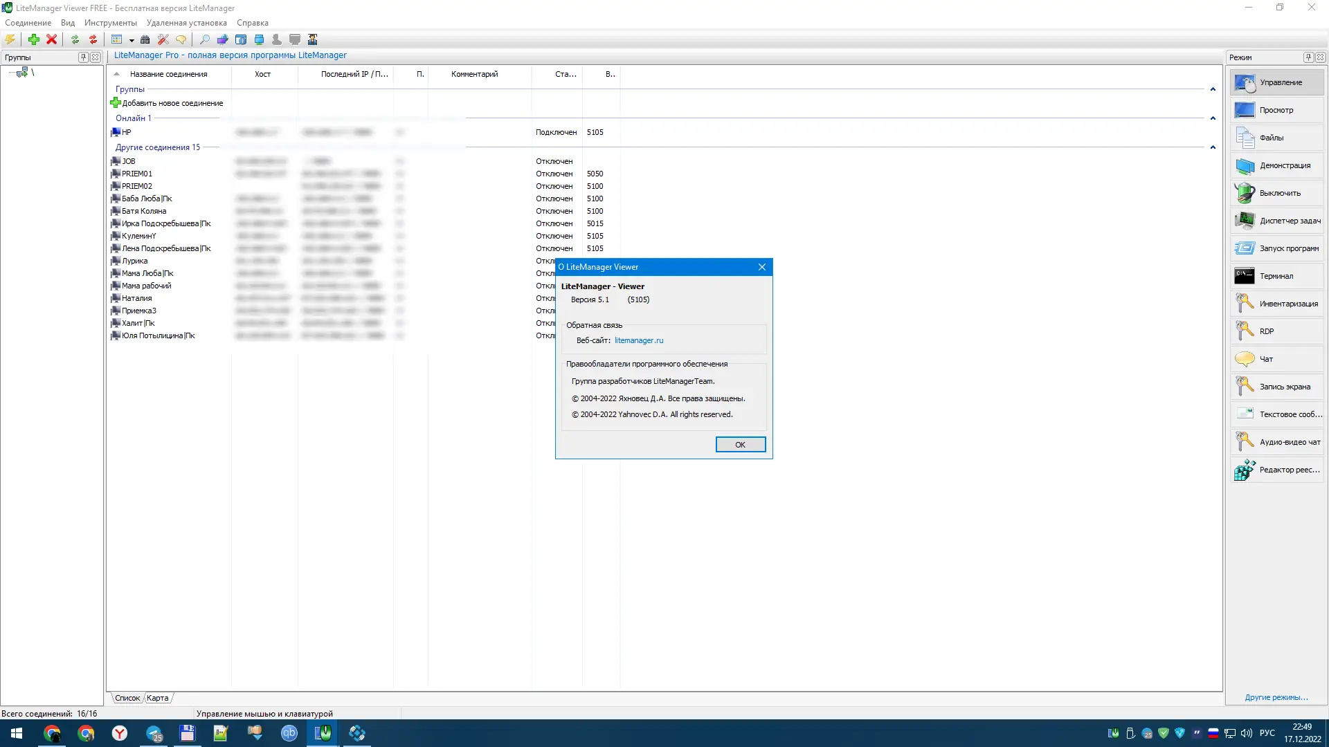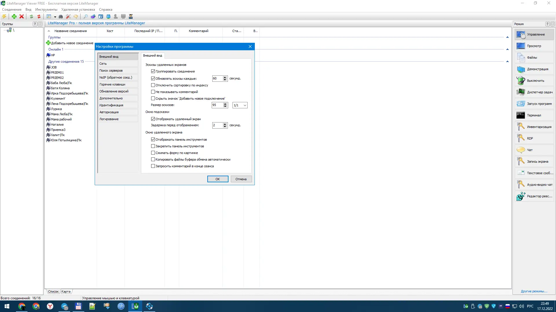 LiteManager предоставляет возможность управлять несколькими компьютерами одновременно, что особенно важно для крупных предприятий и техподдержки.