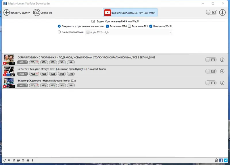 MediaHuman YouTube Downloader — это мощный инструмент, который объединяет простоту использования и широкие возможности загрузки мультимедиа. Он отлично подходит для скачивания как отдельных видео, так и целых плейлистов или каналов, что особенно удобно при работе с большим объемом контента. Высокое качество загрузки и поддержка современных разрешений позволяют сохранять видеоматериалы в максимально возможном качестве. Кроме того, программа обладает функциями автоматической загрузки и интеграции с iTunes, что делает её еще более удобной в использовании.