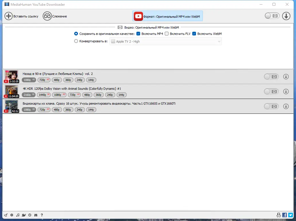 Эффективное управление загрузками и высокая скорость работы делают MediaHuman YouTube Downloader одним из лучших решений в категории качалок.