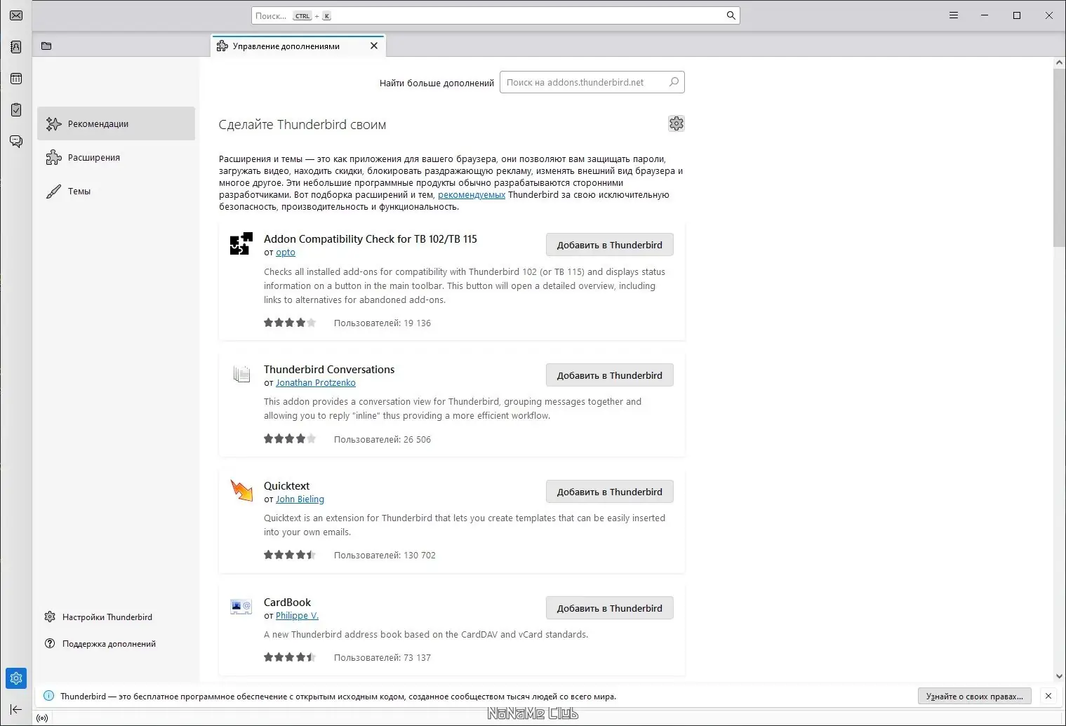 Mozilla Thunderbird — это бесплатное и надежное программное обеспечение для работы с электронной почтой, которое подходит как для личного, так и для профессионального использования. Благодаря простоте настройки и богатому функционалу, оно позволяет эффективно управлять письмами, контактами и папками. Программа обладает высоким уровнем безопасности и регулярно обновляется, что обеспечивает защиту от спама и мошеннических писем.