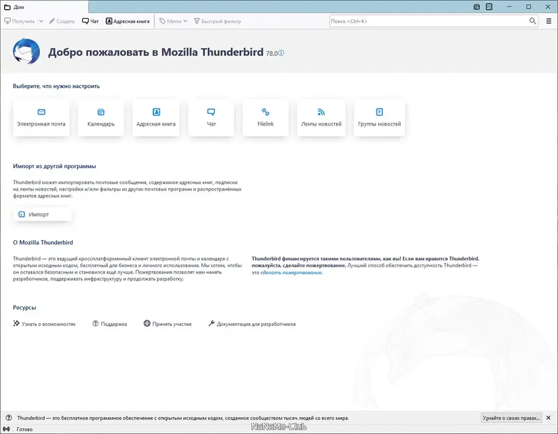 Mozilla Thunderbird — это бесплатная программа для электронной почты, которая отлично подходит для организации и управления письмами. Она легка в установке и настройке, обладает широкими возможностями и обеспечивает безопасность переписки. Благодаря поддержке популярных протоколов SMTP, POP3, IMAP и RSS, эта почтовая программа подходит для пользователей с разными требованиями и уровнями опыта. Скачать бесплатно Thunderbird можно прямо на официальной странице, чтобы быстро начать работу с удобным и надежным почтовым клиентом.