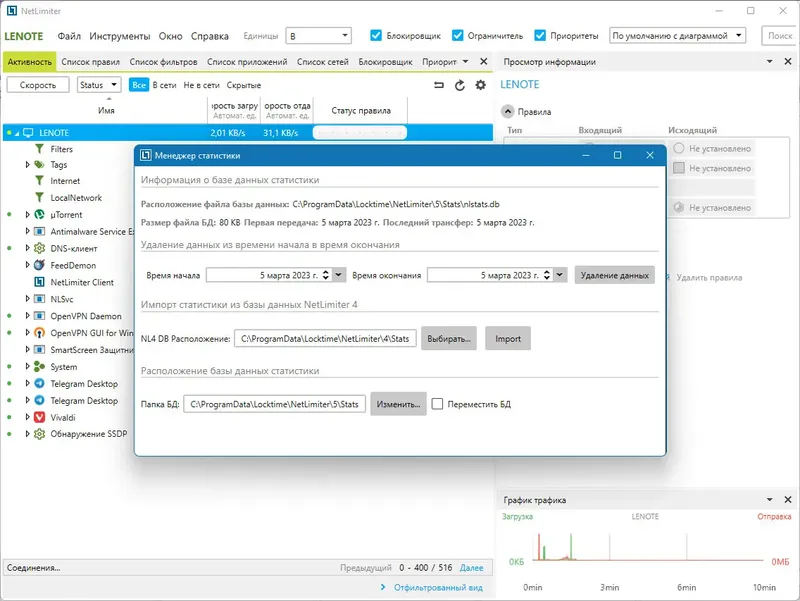 NetLimiter позволяет точно управлять интернет-ресурсами и предотвращать чрезмерное потребление трафика.