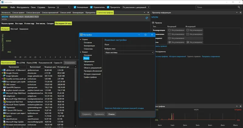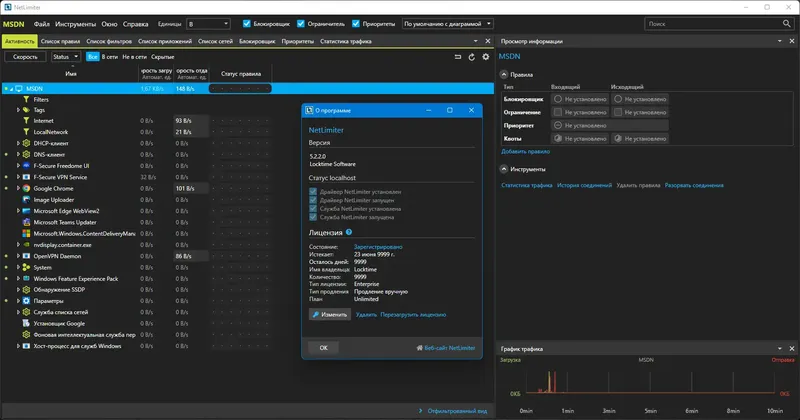 NetLimiter позволяет точно контролировать использование сетевых ресурсов, обеспечивая безопасность и стабильность работы системы.