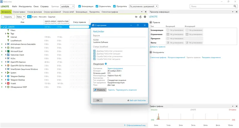 NetLimiter предоставляет полный контроль над сетевым трафиком, что делает его незаменимым инструментом для повышения эффективности использования интернета.