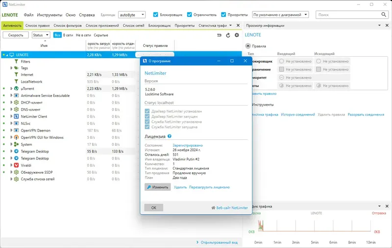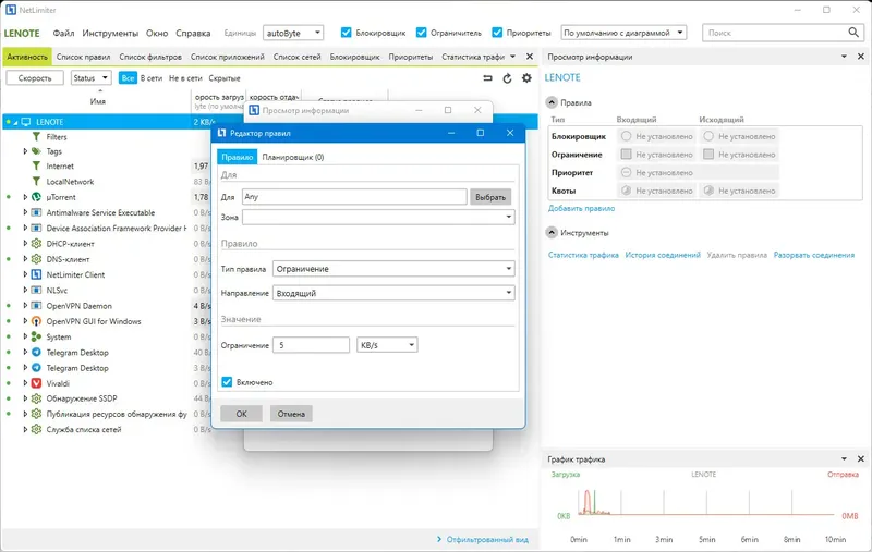 NetLimiter обеспечивает полный контроль над сетевым трафиком, что делает его важным инструментом для оптимизации работы ПК и защиты данных.