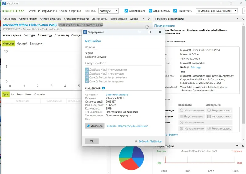 NetLimiter — это мощная программа для контроля и ограничения сетевого трафика на компьютере. Она позволяет отслеживать активность каждого приложения, использующего интернет, а также управлять скоростью передачи данных. С помощью этой утилиты можно настроить индивидуальные лимиты для загрузки и выгрузки информации, что помогает снизить нагрузку на сеть и повысить безопасность системы. Кроме того, программа предоставляет подробную статистику по соединениям, отображая данные в виде графиков и таблиц, что делает контроль за интернет-трафиком максимально удобным и информативным.