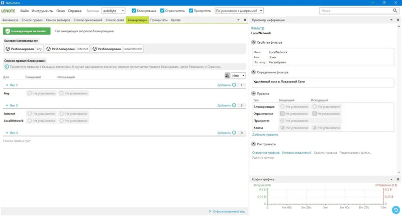 - Возможность заблокировать доступ в Интернет для отдельных программ