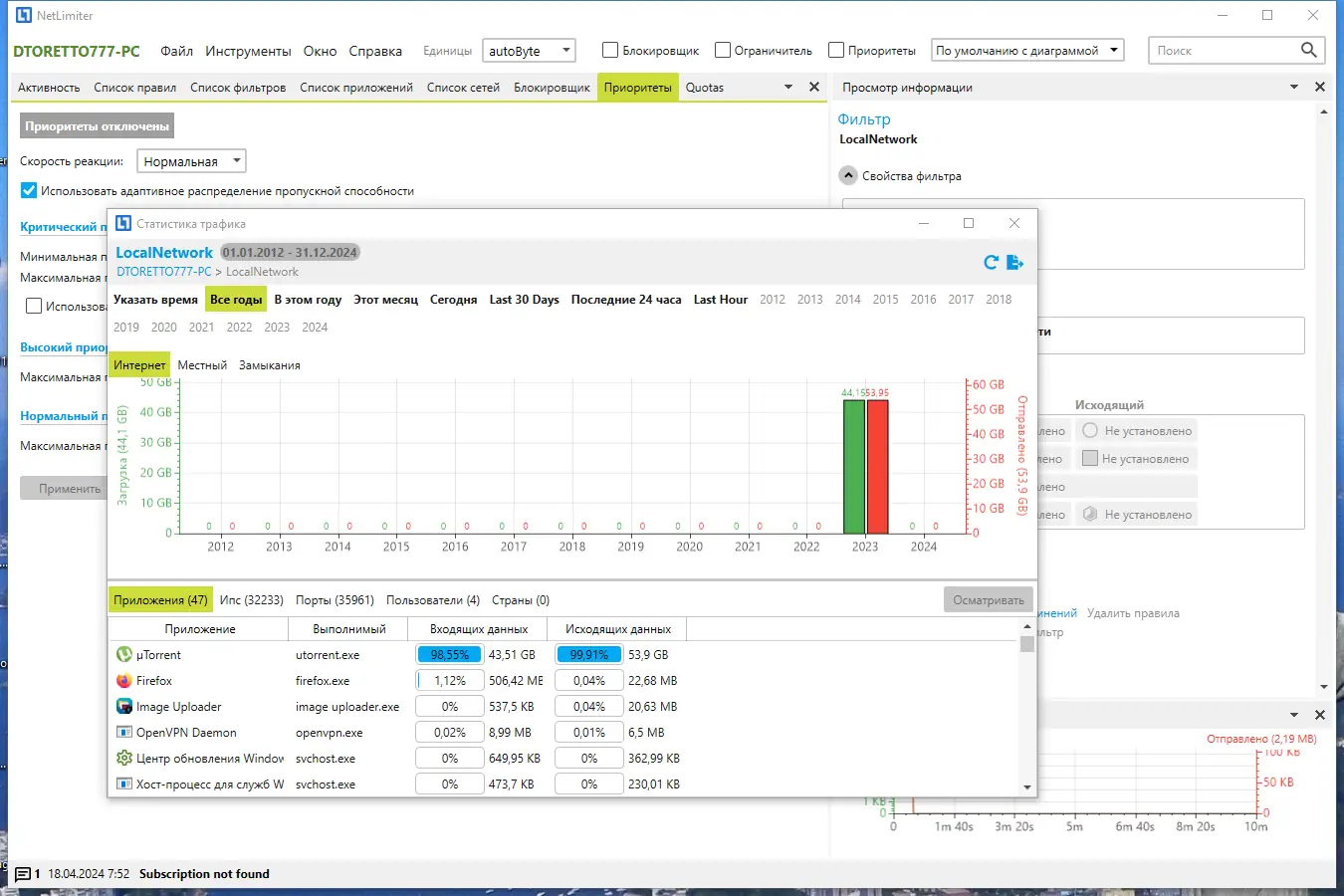 NetLimiter — это мощная программа для контроля и управления сетевым трафиком на компьютере. Она позволяет отслеживать активность каждого приложения, использующего интернет, и настраивать лимиты скорости передачи данных. Благодаря этому можно обеспечить стабильную работу системы и предотвратить чрезмерное использование сетевых ресурсов отдельными программами.