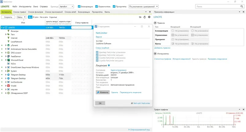 NetLimiter предоставляет расширенные возможности для управления сетевым трафиком, что позволяет повысить безопасность и стабильность работы системы.