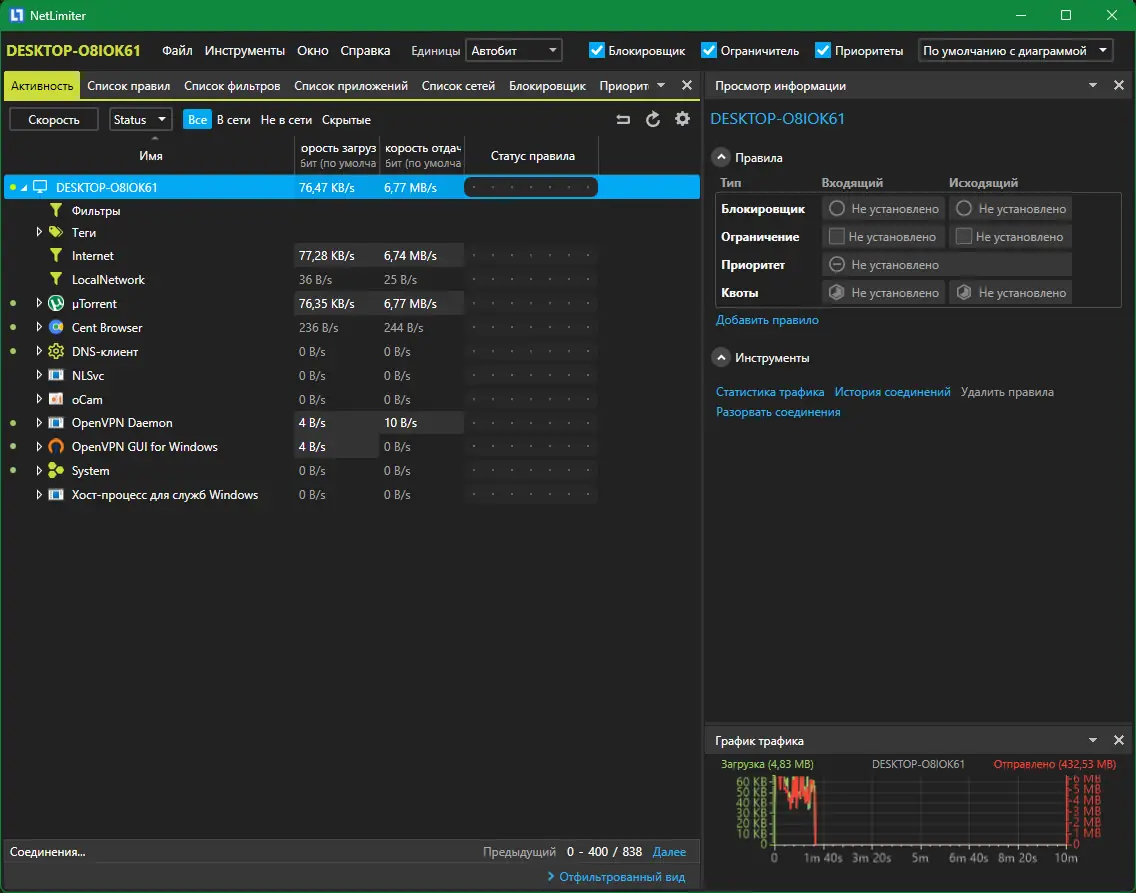 NetLimiter — это одна из лучших программ для контроля сетевого трафика, которая отличается высокой точностью и широкими возможностями настройки. Она подходит для пользователей, которым важно управлять интернет-ресурсами или ограничивать использование сети определёнными приложениями. Благодаря подробной статистике можно легко отслеживать использование данных и выявлять нежелательные соединения.