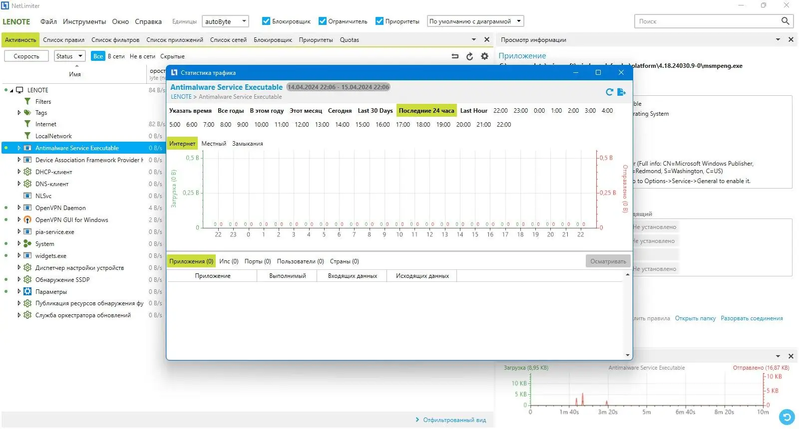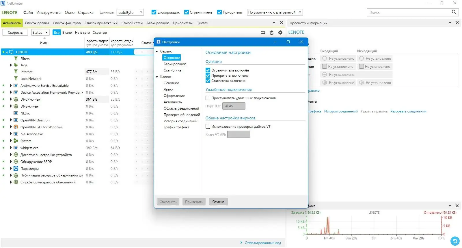 NetLimiter — это универсальное решение для мониторинга и ограничения интернет-трафика, которое подходит как для профессиональных пользователей, так и для домашних пользователей. Благодаря интуитивно понятному интерфейсу, программа позволяет управлять скоростью загрузки и выгрузки данных для каждого приложения в отдельности. Она также обеспечивает глубокую аналитику и подробные отчеты о сетевой активности, что помогает выявлять и устранять узкие места в работе сети. Уникальной особенностью является возможность приоритизации трафика, что обеспечивает стабильную работу важных программ и сервисов.