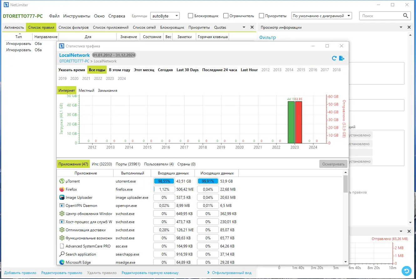 NetLimiter позволяет легко управлять интернет-ресурсами и предотвращать чрезмерное использование сети.