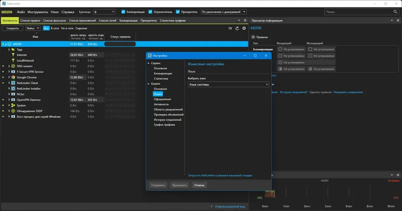 NetLimiter позволяет точно контролировать сетевую активность и управлять расходом интернет-ресурсов, что особенно важно для пользователей с ограниченным трафиком или в корпоративных сетях.