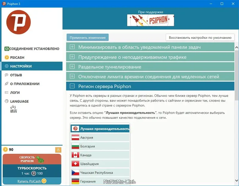 Psiphon — это бесплатное программное обеспечение, которое позволяет обойти интернет-цензуру и получить доступ к заблокированным сайтам и ресурсам с помощью технологий VPN, SSH и HTTP прокси. Этот инструмент особенно полезен для тех, кто сталкивается с ограничениями в доступе к определённым онлайн-ресурсам, обеспечивая стабильное соединение и возможность свободного серфинга в сети. Psiphon не предназначен для повышения уровня онлайн-безопасности и не гарантирует полной анонимности, однако отлично справляется с задачей обхода блокировок и региональных ограничений.