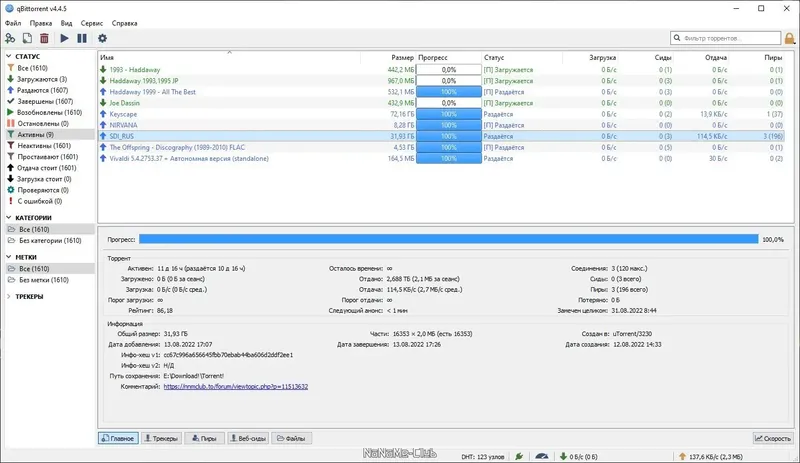 - Поддержка всех популярных протоколов и расширений BitTorrent