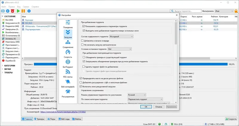 qBittorrent обеспечивает высокую скорость загрузки и широкие возможности настройки для комфортной работы.