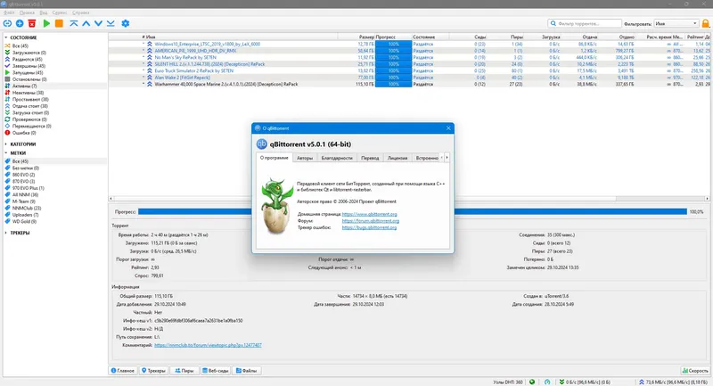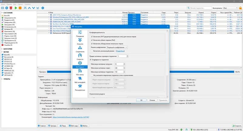 qBittorrent обеспечивает высокую скорость загрузки и стабильность работы, что делает его одним из лучших бесплатных торрент-клиентов.