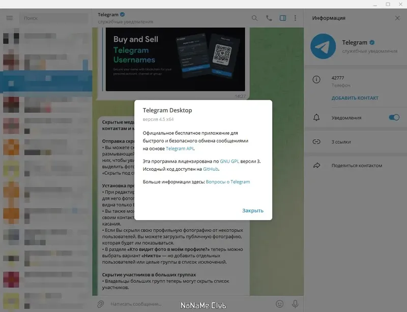 Telegram Desktop — это популярный кроссплатформенный мессенджер, который работает на операционных системах Windows, macOS и Linux. Он отличается высокой скоростью обмена сообщениями и надежной системой шифрования, что делает его одним из самых безопасных способов коммуникации. Благодаря интеграции с облаком, все ваши чаты и медиафайлы автоматически синхронизируются между гаджетами, обеспечивая доступ к ним в любое время и в любом месте. Программа поддерживает отправку фотографий, видео, документов различного формата, а также создание групп до 200 участников и даже больших каналов для вещания. Это универсальный инструмент для личного и делового общения, позволяющий быстро обмениваться информацией без ограничений по размеру файлов или количеству сообщений.