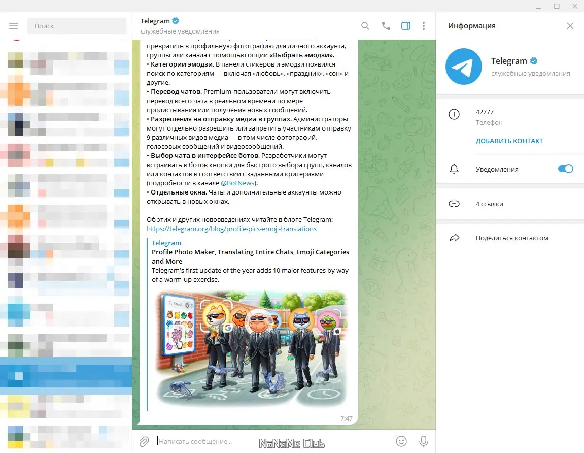 Telegram Desktop — это бесплатный и удобный мессенджер для обмена сообщениями, который работает на различных платформах, включая Windows 10 и Windows 11. Он обеспечивает быструю и безопасную связь с друзьями, коллегами или клиентами, позволяя отправлять текстовые сообщения, файлы, фотографии и видео. Благодаря синхронизации данных между всеми устройствами, пользователи всегда имеют доступ к своим чатам и медиа. Этот официальный клиент отличается простотой в использовании и высокой скоростью работы, что делает его популярным выбором для личного и делового общения.
