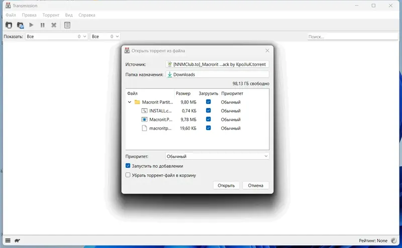 Как пользоваться Transmission