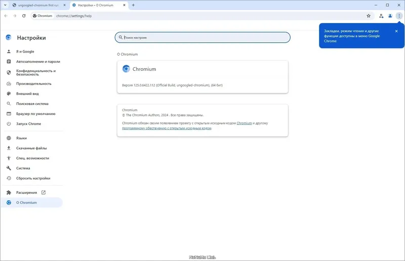 Описание Ungoogled Chromium