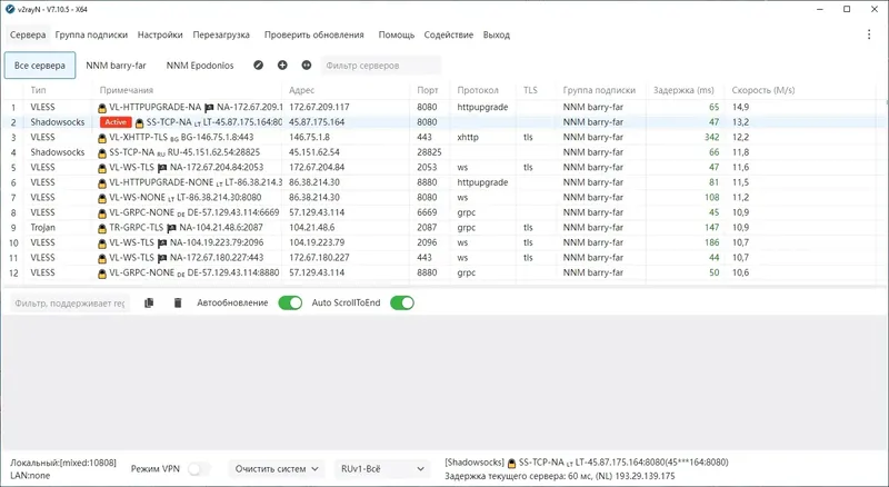 v2rayn — это бесплатный и открытый клиент для Windows, который предоставляет удобный графический интерфейс для управления серверами V2Ray. Он позволяет пользователям легко переключаться между различными серверами, настраивать правила маршрутизации и контролировать состояние соединения. Программа поддерживает работу с несколькими протоколами и обеспечивает стабильное подключение, что делает её незаменимым инструментом для обхода цензуры и обеспечения безопасного доступа к интернет-ресурсам. Встроенные функции автоматического подключения и экспорт/импорт конфигурационных файлов значительно упрощают настройку и использование.