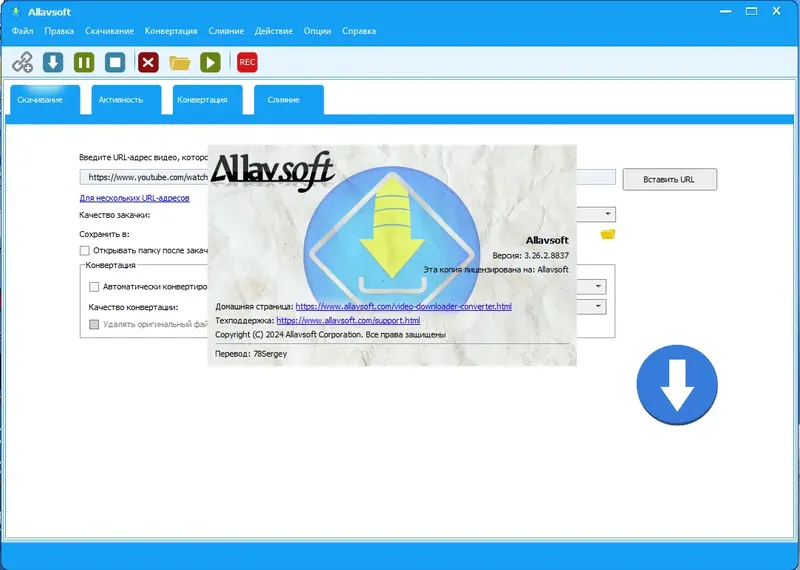 - Поддержка загрузки видео и аудио в различных качествах, включая 4K и HD.