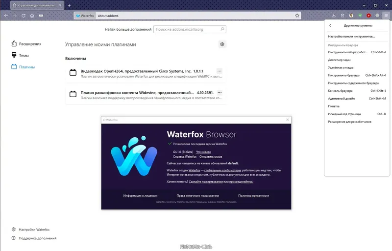 - Некоторые расширения могут быть несовместимы с Waterfox