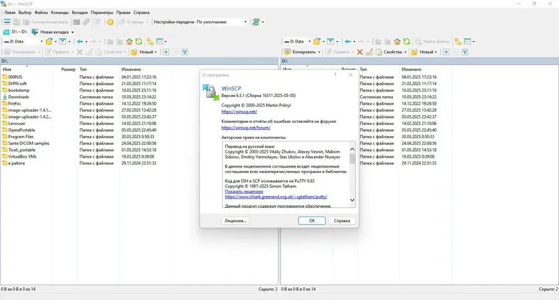 WinSCP — это бесплатный и с открытым исходным кодом клиент для работы с протоколами передачи файлов, такими как SFTP и SCP, что делает его популярным инструментом для работы с удаленными серверами. Он поддерживает работу через SSH, что обеспечивает высокий уровень безопасности при подключении и передаче данных. В программе реализованы функции автоматизации, синхронизации папок и интеграции с системными компонентами Windows, что значительно повышает эффективность работы с файлами на сервере или локальном компьютере.