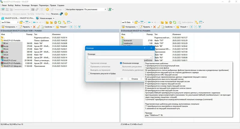 - Поддержка протоколов SFTP и SCP для безопасной передачи файлов