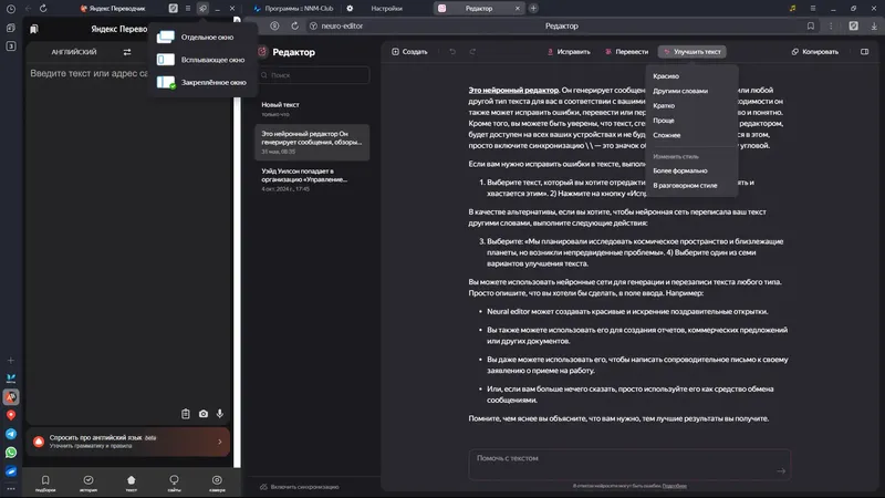 - Расширенные нейросетевые возможности, такие как перевод видео и изображений