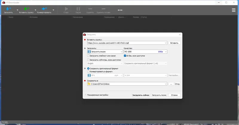 - Поддержка скачивания видео в 4K и Full HD качестве.