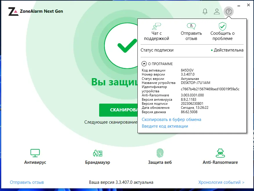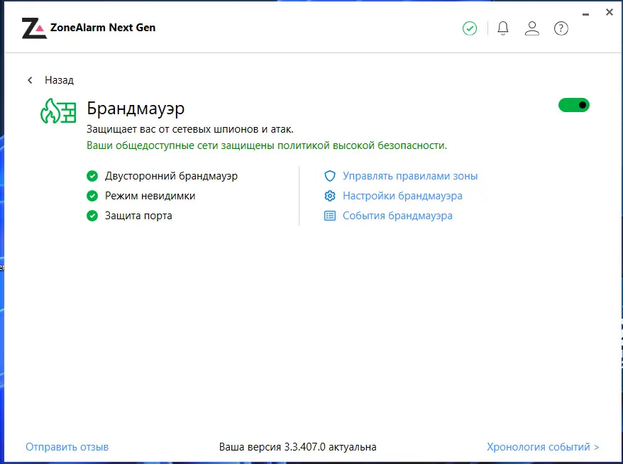 - Технология ZoneAlarm ForceField для защиты браузера и предотвращения атак