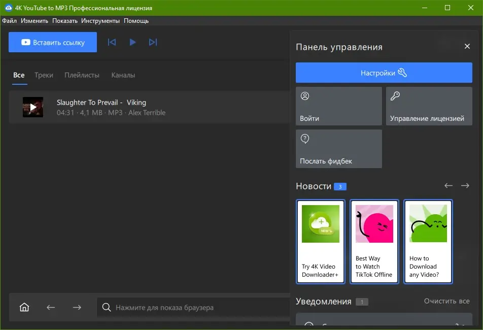 4K YouTube to MP3 — это удобное приложение для быстрого скачивания аудио с популярных видеохостингов. Оно позволяет сохранять музыку и звуковые дорожки в форматах MP3, M4A и OGG без сложных настроек и лишних функций. Простота использования и возможность скачивать целые плейлисты делают это программное обеспечение незаменимым для любителей аудиоконтента, которые хотят иметь любимые треки оффлайн.