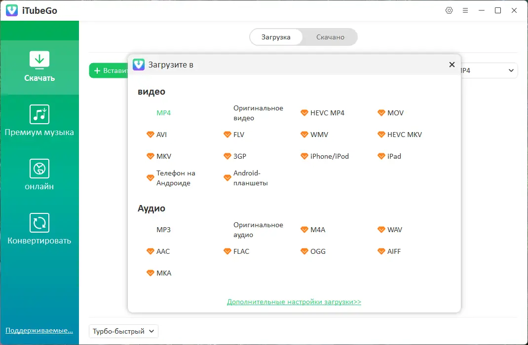 iTubeGo — это современный youtube downloader, который позволяет скачивать видео и музыку с самых популярных потоковых платформ. Благодаря поддержке режима портативной версии и функции распаковки, программа легко устанавливается и работает без необходимости регистрации. Высокая скорость загрузки, возможность скачивать целые плейлисты и каналы, а также поддержка 8K видео делают её востребованным инструментом для любителей и профессионалов. Скачать торрент-версию или оригинальный репак можно на официальной странице, что обеспечивает безопасность и стабильность работы.