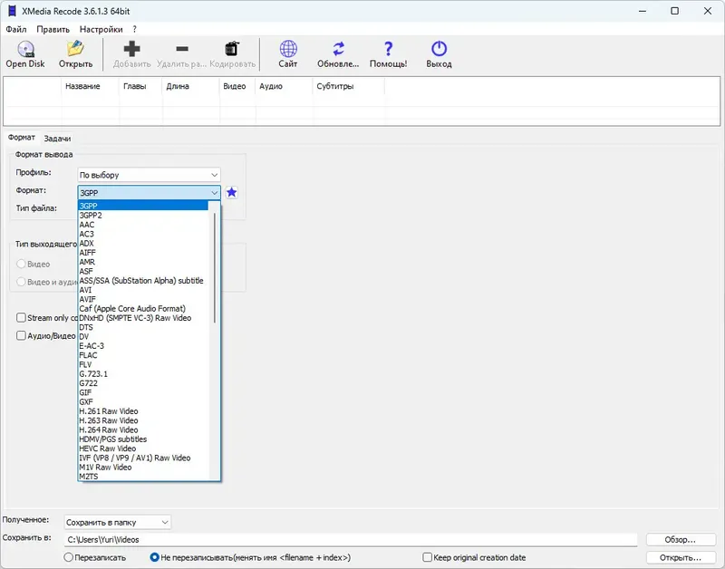 - Поддержка более 300 форматов видео и аудио для ввода и вывода.
