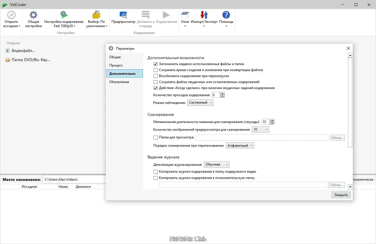 - Использование аппаратного ускорения через AMD VCE, Nvidia NVENC и Intel QuickSync для ускорения процесса.