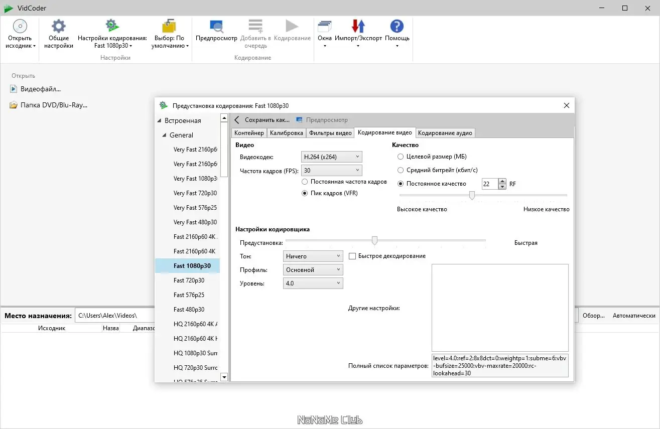 VidCoder — это универсальный редактор для кодирования видео, основанный на популярной утилите HandBrake. Он предназначен для извлечения видео с DVD и Blu-ray дисков, а также для транскодирования видеофайлов в различные форматы с возможностью настройки параметров. Программа поддерживает пакетную обработку, что значительно ускоряет работу с несколькими файлами одновременно. Встроенные пресеты позволяют быстро выбрать оптимальные настройки для разных устройств и целей, а экспорт и импорт настроек в формате XML делает процесс еще более удобным и настраиваемым.