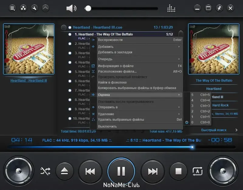 - Гибкая настройка интерфейса, в том числе смена скинов и загрузка обложек.
