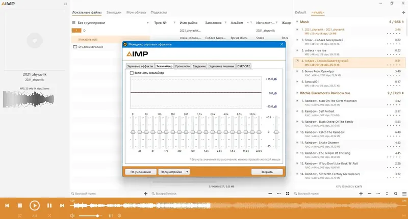 - Встроенные эквалайзеры и аудиофильские эффекты