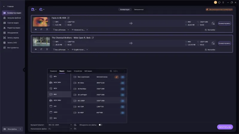 - Высокое качество записи и гибкая настройка параметров