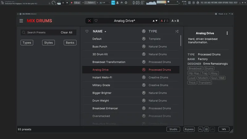 Mix DRUMS позволяет добиться профессионального звучания ударных за считанные минуты, значительно ускоряя процесс сведения и мастеринга.